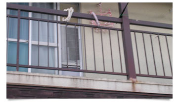 日当たりのよいベランダは、塗料にとってはとても厳しいところ。鉄製の手摺、錆びにくいとされているアルミの劣化スピードは速まります。気がついた時にこまめに塗装して守りましょう。